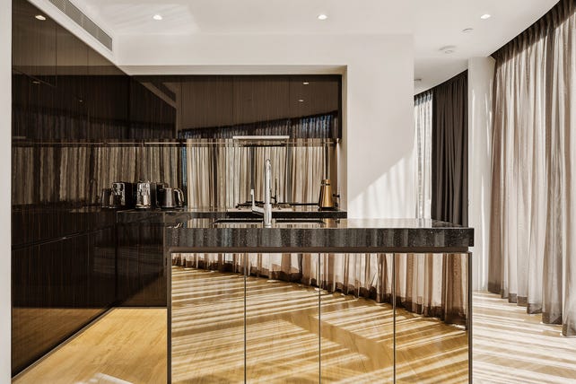 Wrapped in floor-to-ceiling glass and tiled throughout, this 7th floor residence captures 180° of uninterrupted green and city. It's the ideal city retreat for couples, singles or anyone chasing that rare thing: a home that feels just right.
