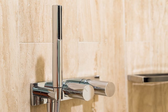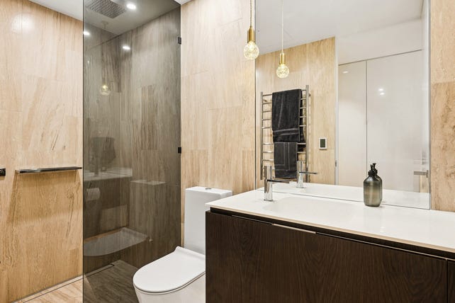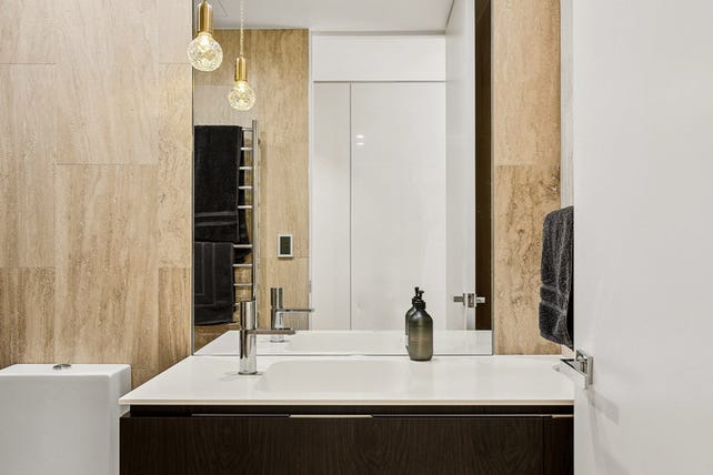 + Two luxe bathrooms with full-height travertine tiles and brand new vanities