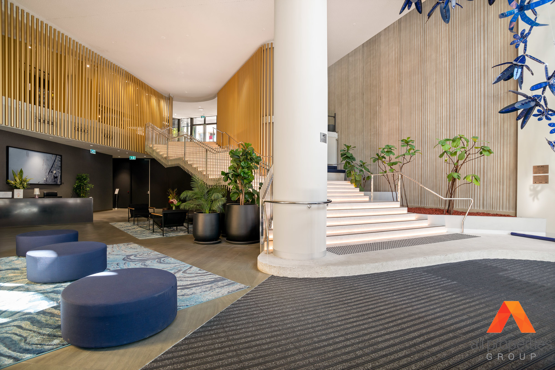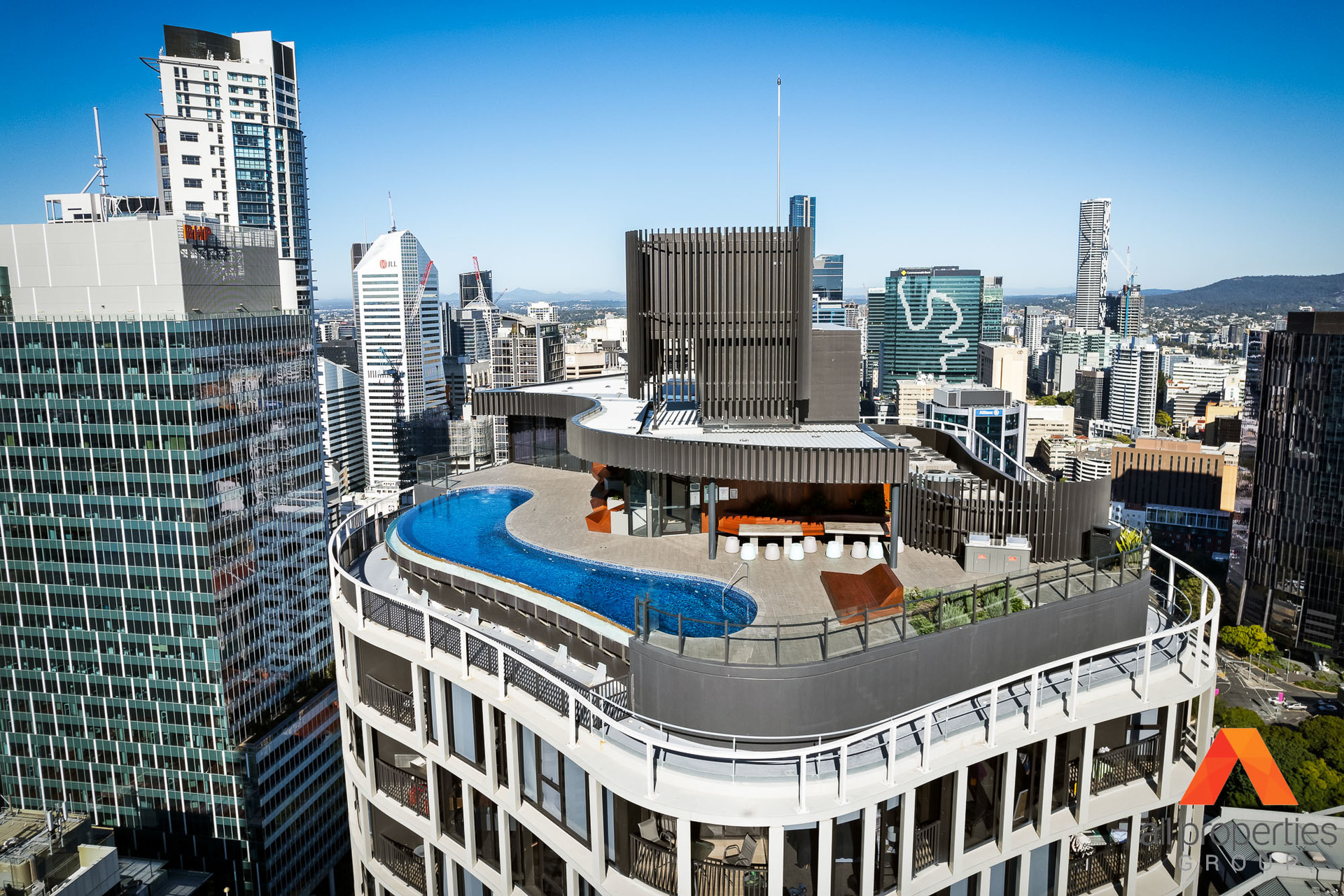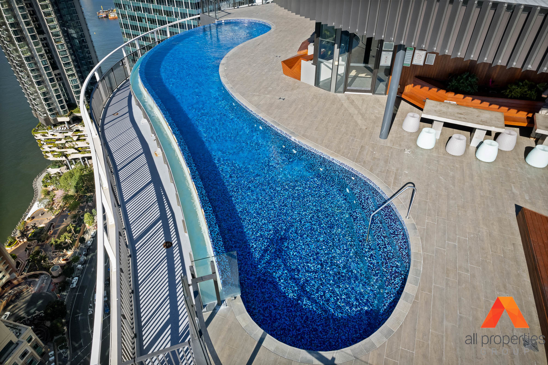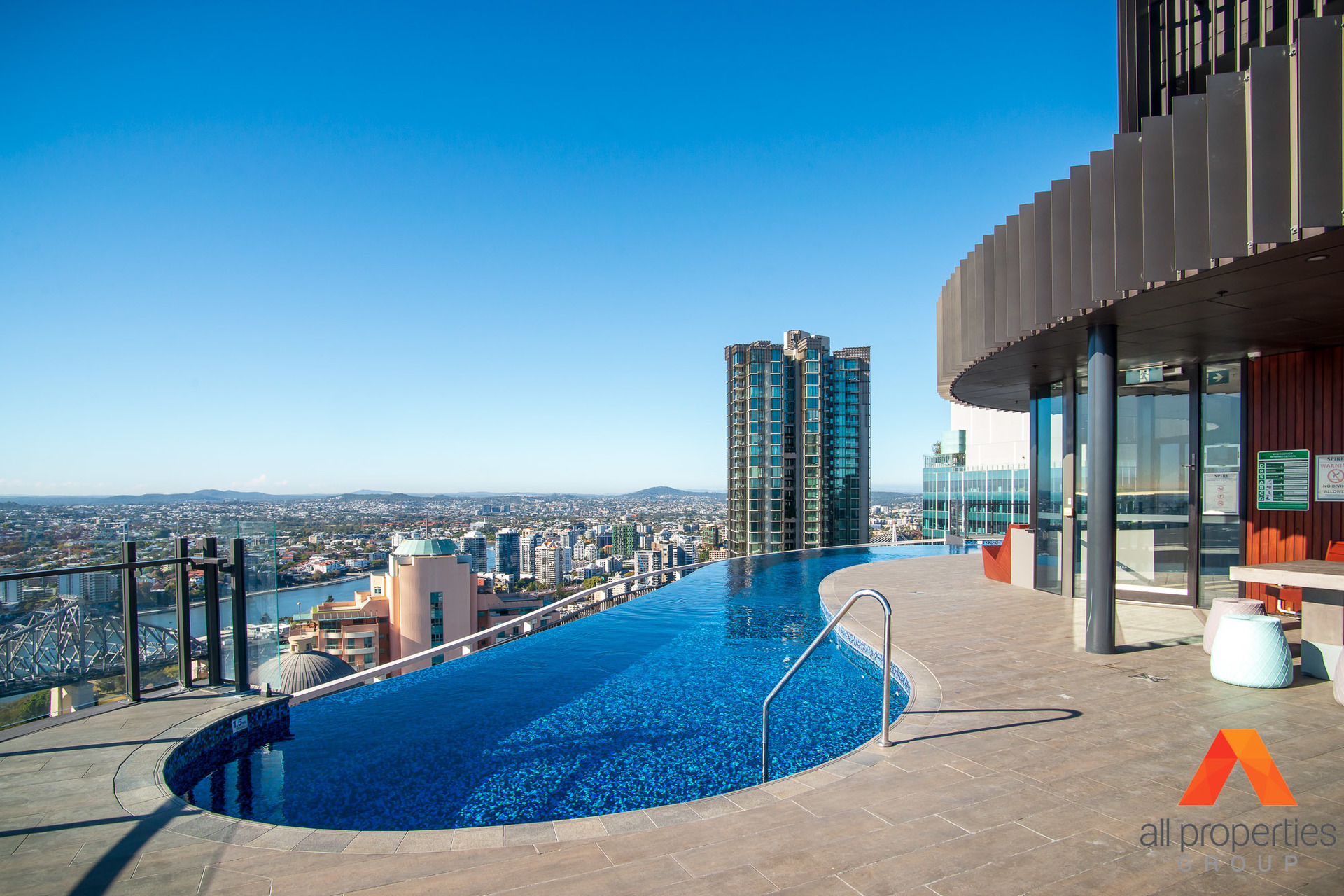 Spire Apartments features: - Rooftop leisure deck - Beautiful infinity pool - Alfresco barbeque area and relaxing sun lounges - Rooftop gymnasium - Private dining room available for residents to host private functions