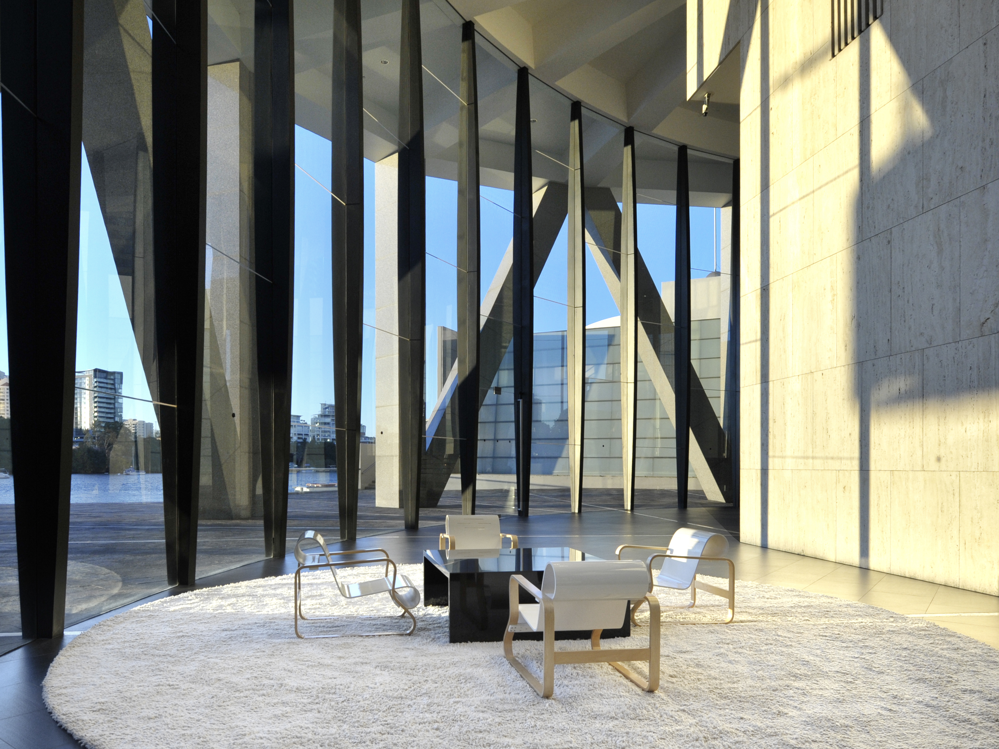 Boasting riverfront living on the 47th floor, the residence unveils an original Harry Seidler design in immaculate condition. The interiors showcase updated carpet, and an array of Crown Cut European Ash veneer and polished Verde Marina granite finishes. The living and dining area opens to the alfresco balcony with integrated seating taking in the inspiring views. The resident chef can prepare meals with the range topping V Zug appliances also equipped with an integrated dishwasher and integrated French door fridge/freezer.