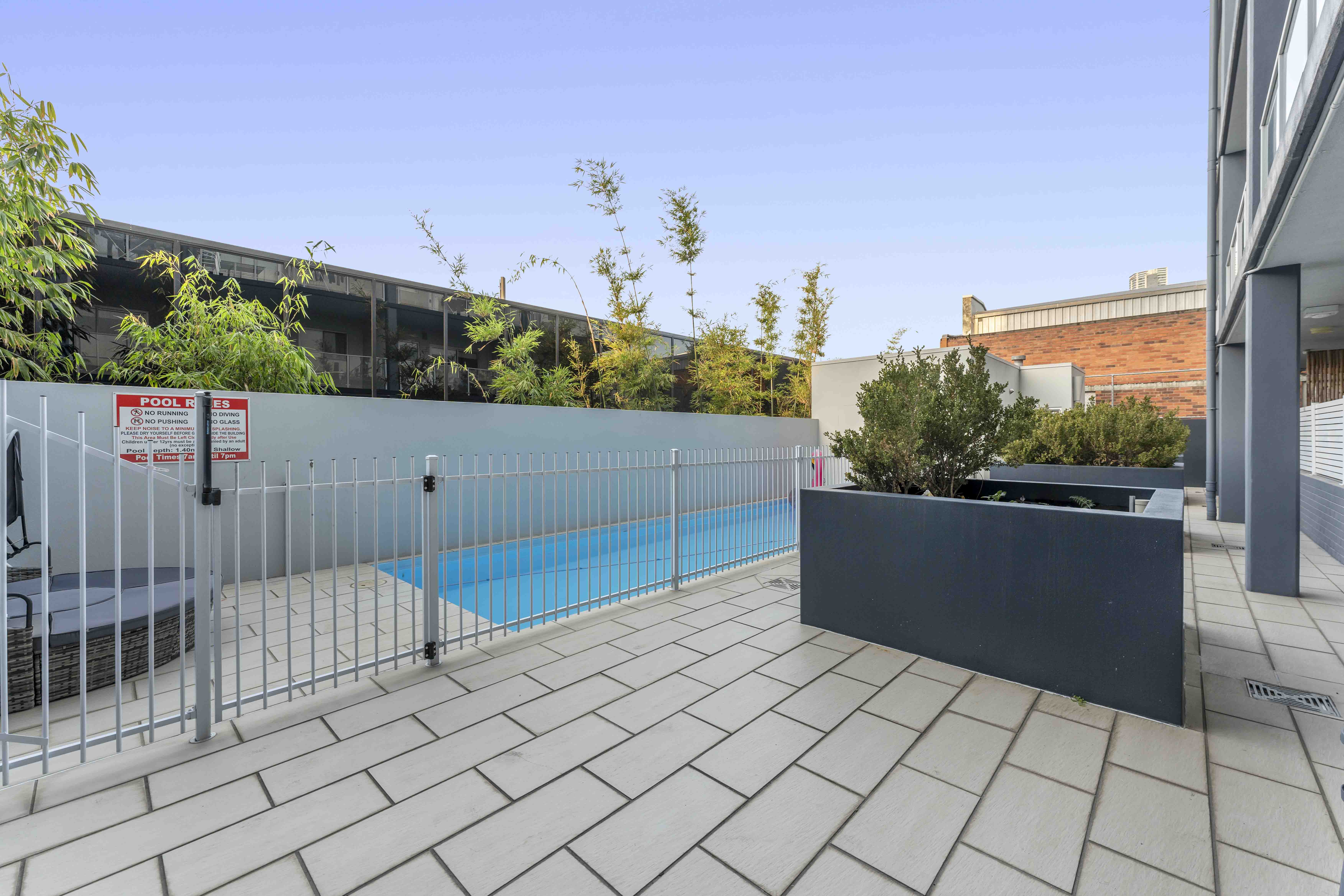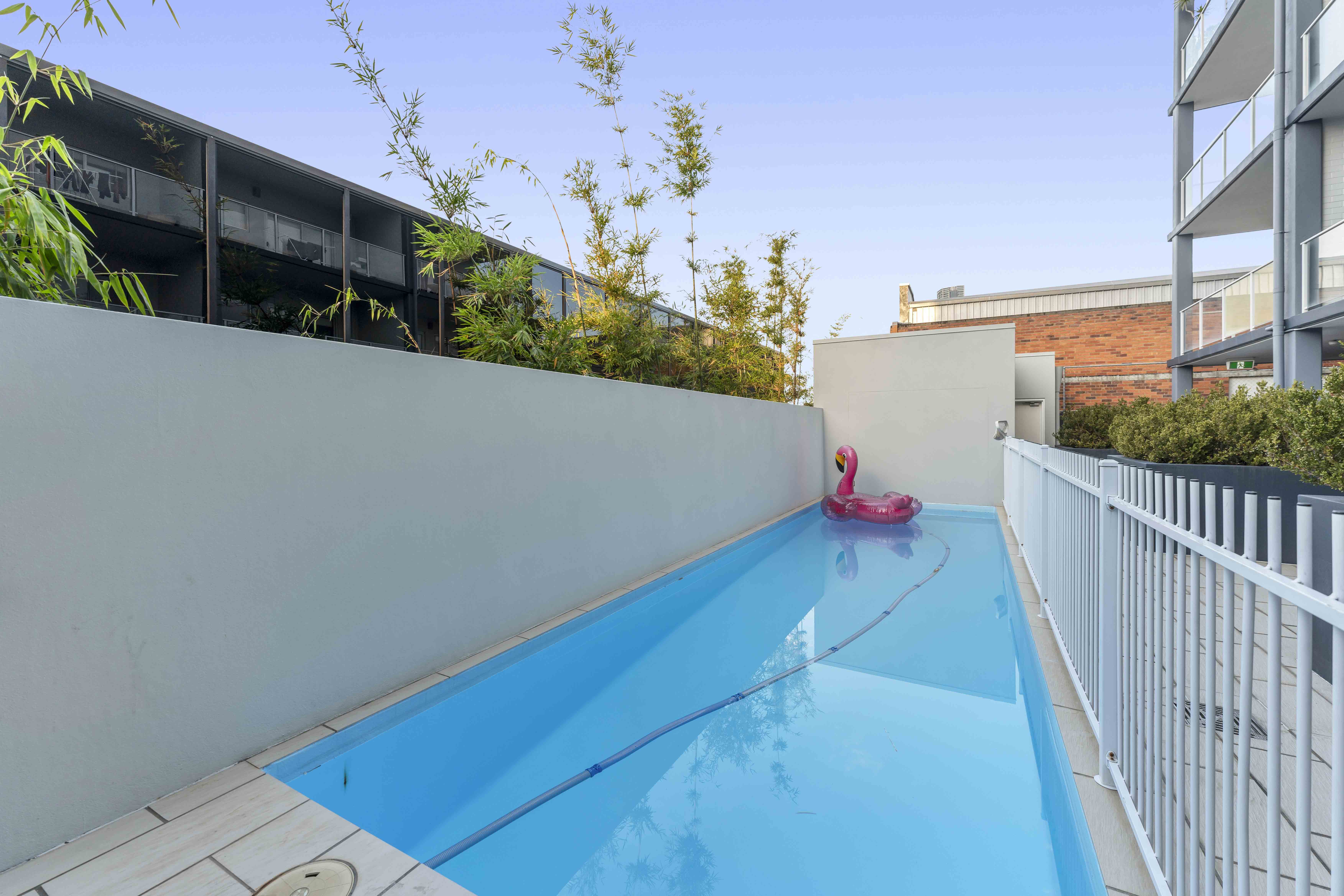 Security screen doors and windows allow for breezes, and the in-ground pool offers a refreshing escape during Queensland's warmer months. The swimming pool features a brand-new fibreglass lining, and the entire building has been recently repainted for a fresh, modern look. A great feature of the apartment is its exceptional quietness; you won't hear any sounds from the street, allowing for a tranquil living environment.