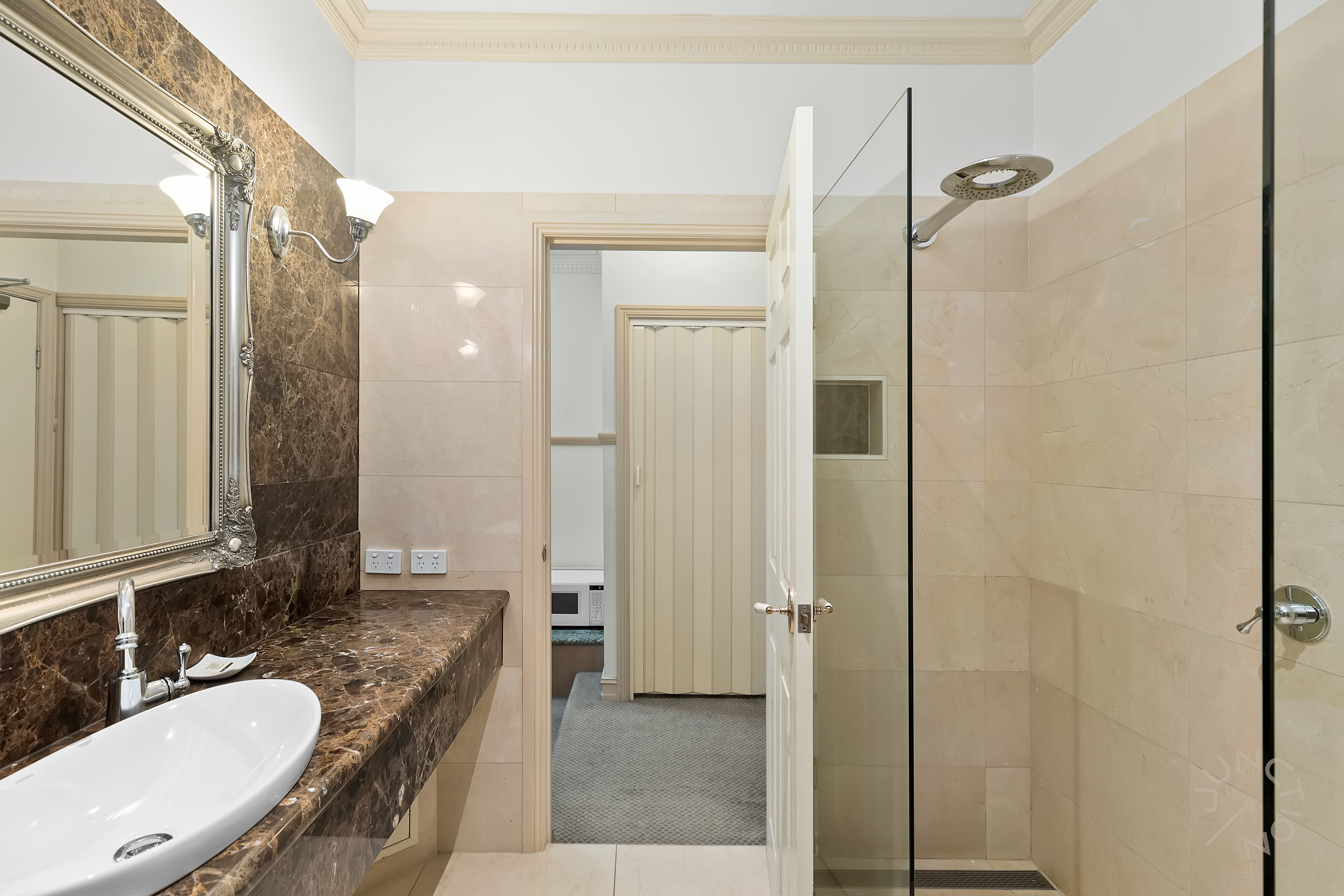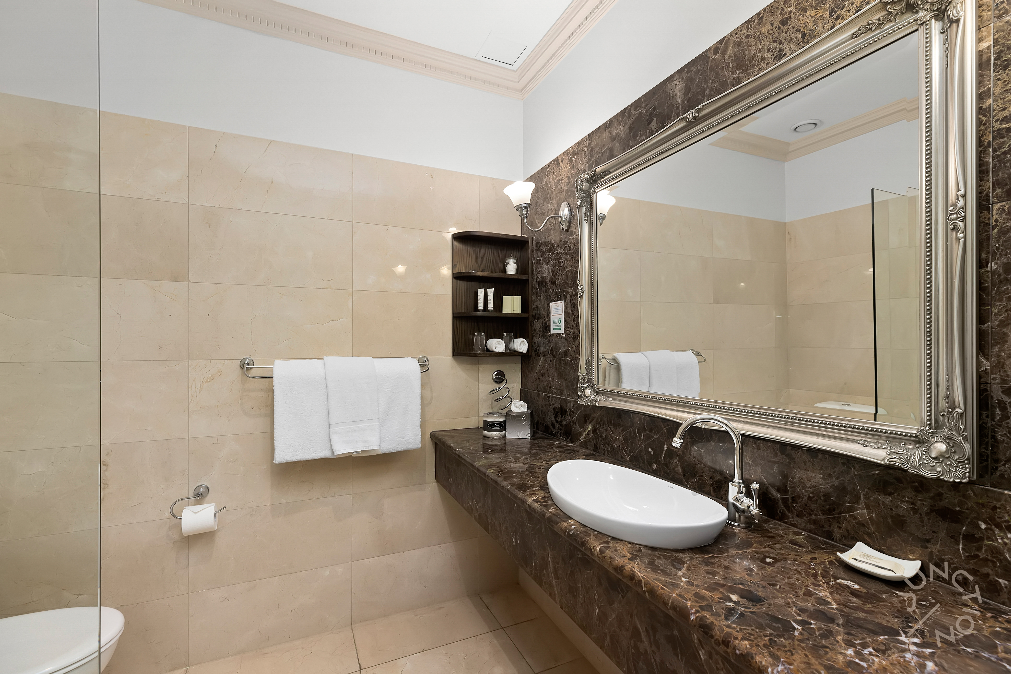 The apartment offers a spacious deluxe suite complete with a flat-screen TV, providing a perfect blend of comfort and modern amenities. It includes a large marble bathroom that adds a touch of luxury. The apartment is designed to maximize space and light, featuring large windows that face Elizabeth St. The apartment is fully furnished with high-quality fixtures, ensuring a ready-to-move-in experience. The high 14-foot ceilings add to the sense of space and grandeur, while the ducted air conditioning throughout the apartment ensures comfort in all seasons.