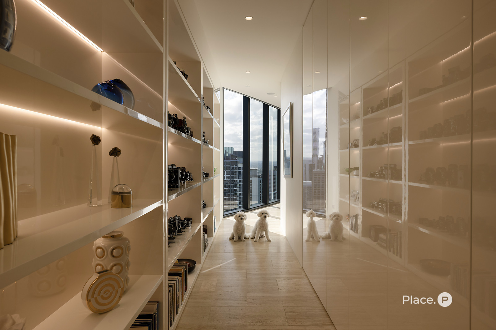 Another impressive space is the apartment's spectacular gourmet kitchen, which displays Calcutta marble benchtops, a butler's pantry and ample 2Pac cupboard storage. A suite of premium appliances includes an integrated wine fridge and double fridges, plus a Ziptap hot/cold water tap and Miele gas and induction cooktops.
