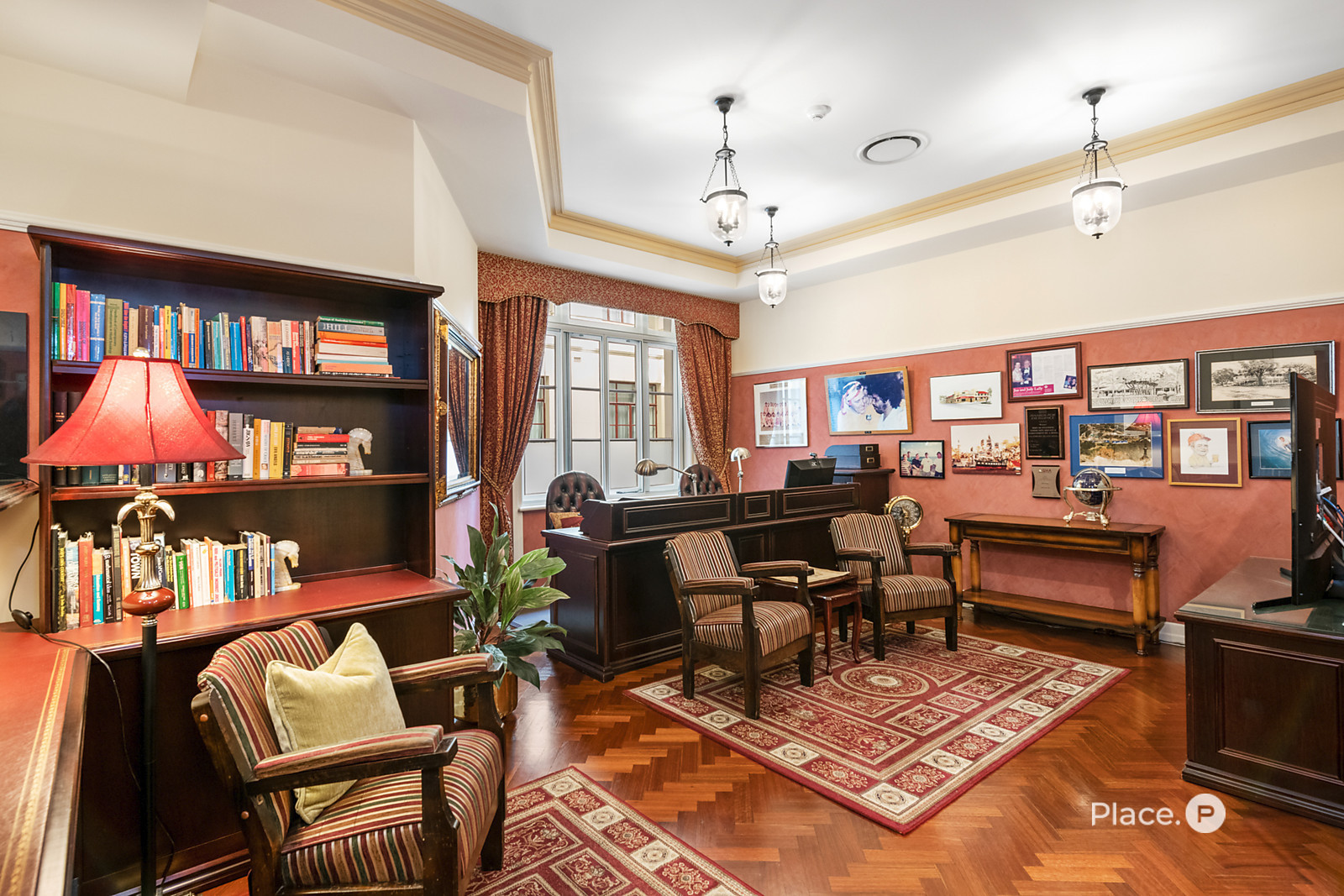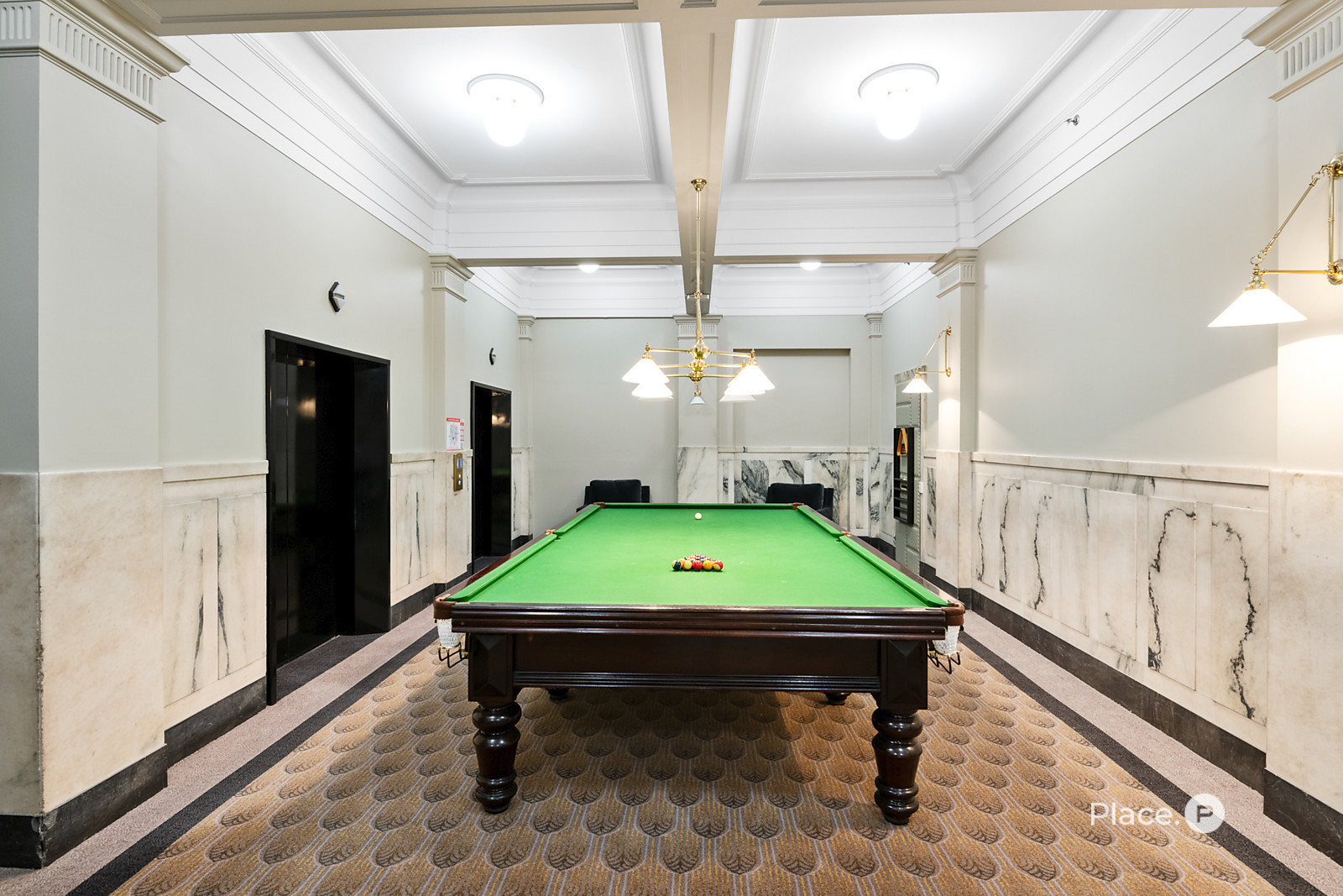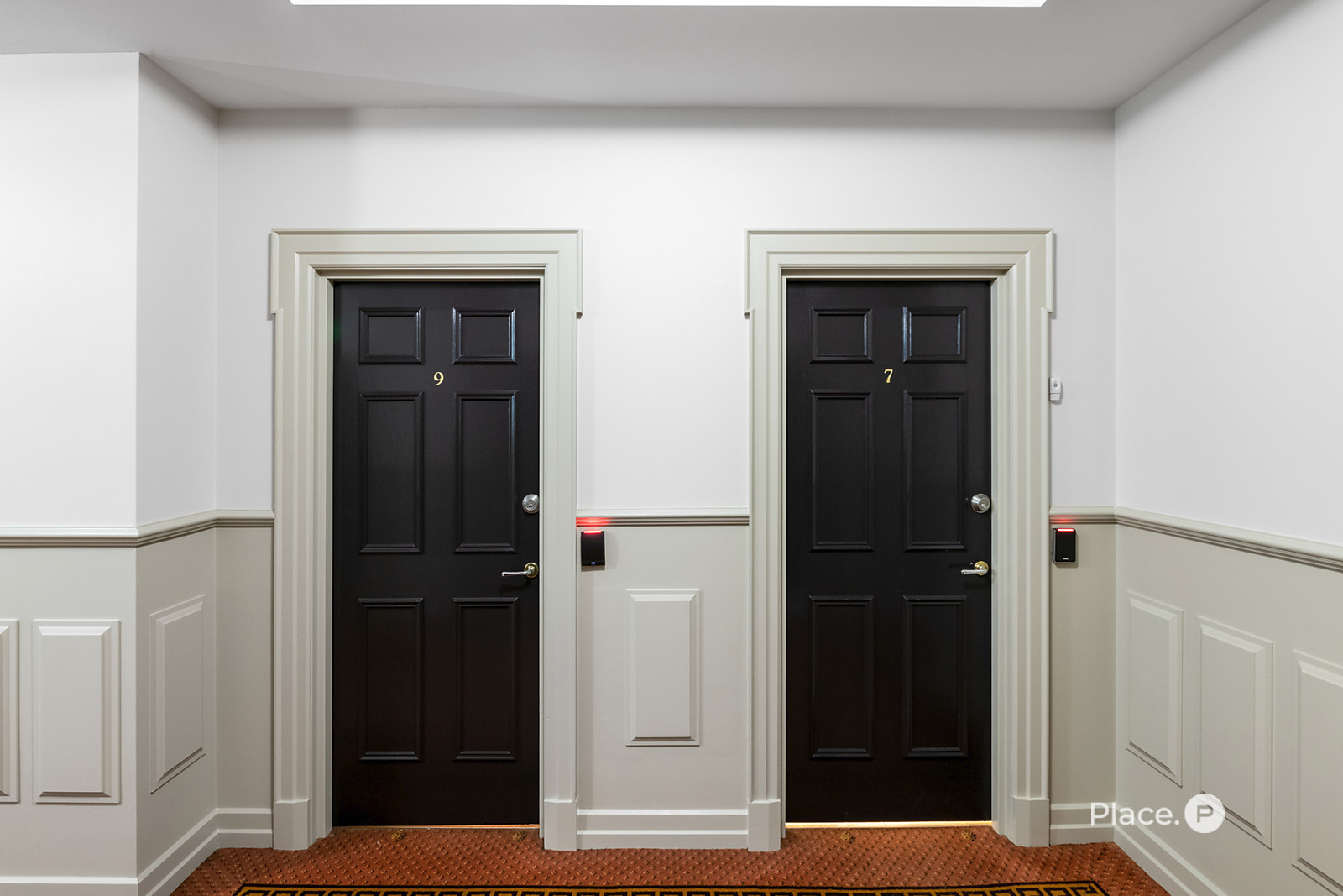 Showcasing exquisite Art Deco architectural elements such as lofty coffered ceilings, decorative cornices, plantation shutters, parquetry timber flooring, marble features and striking pendant lights, the two properties celebrate classic elegance. The building's grand entry foyer echoes the same glamorous style, featuring a magnificent central staircase, marble accents and Art Deco-patterned carpeted floors.